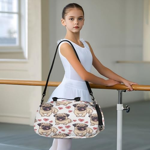 YETTASBIN Sport Travel Duffel Bag for Girls Boys, Pug Dog Large Waterproof Weekender Overnight Bag, Detachable Shoulder Strap Gym Bag with Shoe Compartment & Wet Pocket 5