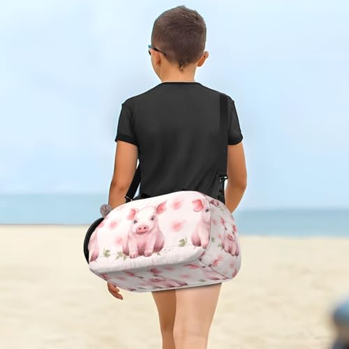YETTASBIN Sport Travel Duffel Bag for Girls Boys, Ping Pig Large Waterproof Weekender Overnight Bag, Detachable Shoulder Strap Gym Bag with Shoe Compartment & Wet Pocket 7