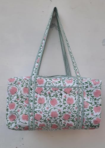 HOT ! Women’s Cotton Quilted Duffel Bag, Floral Embroidered Travel Bag, Boho Weekend, Overnight, Shopping & Carry-On Shoulder Bag (20x10x10) (24x12x12")