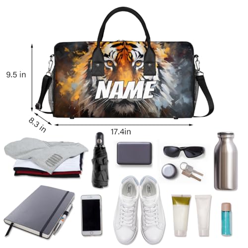 HOT ! Personalized Wildlife Tiger Travel Duffel Bag with Name, Custom Gym Sport Bag Forest Animal Carry On Weekend Overnight Duffel Bag for Men Women