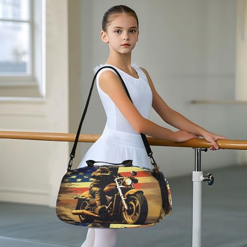 American Flag Motorcycle Kids Overnight Sports Duffel Bags with Shoe Compartment & Wet Pocket Travel Sport Gym Bag for Girls Boys 5