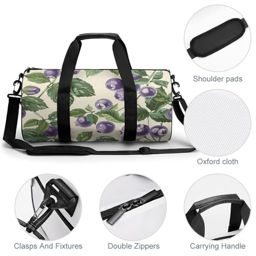 HOT ! Hand Drawn Blueberries Gym Bag Small Travel Duffle Bag with Compartment Carry On Weekender Bag for Women Men