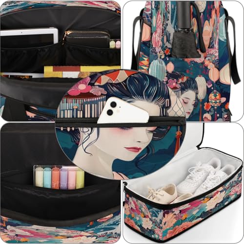 Flower Beautiful Woman Japan Travel Duffel Bags for Women & Men Large Sports Gym Bags Foldie Weekender Overnight Bag Carry On Tote Bag With Shoe Compartment Personal Item Luggage for Travel Sports Gym 6
