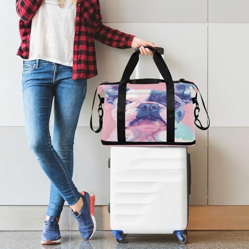 Pink Background and Dog Travel Duffel Bag Waterproof Gym Sport Tote Bag Carry On Weekender Bag with Compartment 3