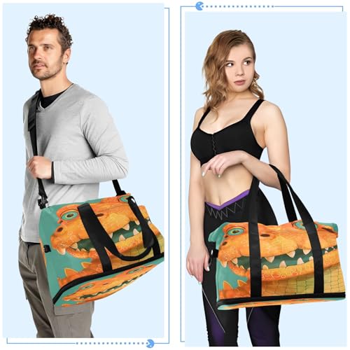 Alligator Head Travel Duffel Bag Waterproof Gym Sport Tote Bag Carry On Weekender Bag with Compartment 6