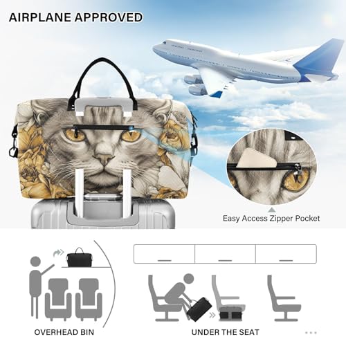 HOT ! Large Travel Duffel Bag Toyger Cat Flower Cute Sports Tote Gym Bags, Shoulder Weekender Overnight Bags for Women Men, Carry On Luggage with Toiletry Bag