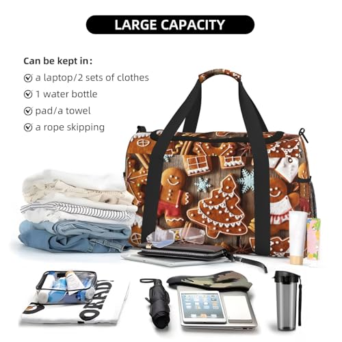 • Activity Accommodator: cute cookies man print Gym Bag not only houses gym gear but also effortlessly accommodates essentials for weekend retreats and intense outdoor activities like hunting. Its flexible design makes it a staple for fitness enthusiasts and adventure seekers alike.