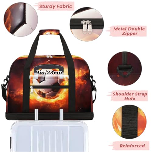 Soccer Ball Luminous Design Travel Duffle Bags With Shoes Compartment for Women Men Weekender Overnight Bag Foldable Sports Tote Gym Carry On Luggage Handlebag for Travel Yoga Hospital Workout 1