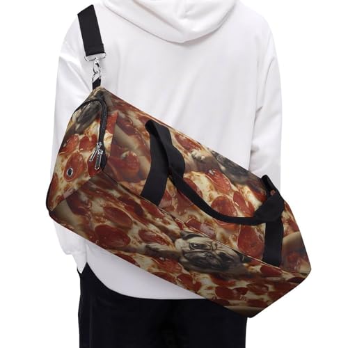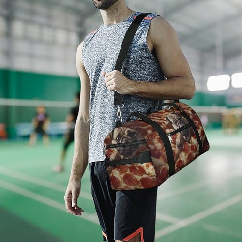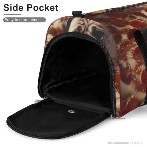 Pug and Pizza Funny Gym Bag Travel Tote Bag Duffel Bag with Shoe Compartment for Weekender Sports Vacation 6