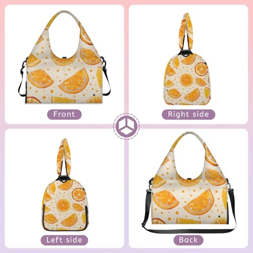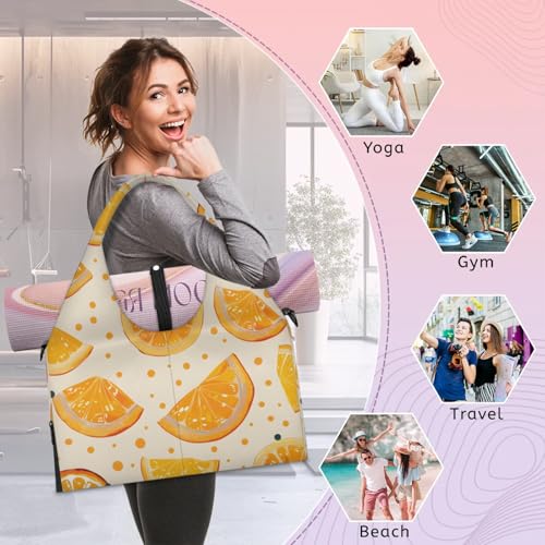 Yoga Tote Bag for Women Cute Orange Slices Beach Bag with Shoe Storage & Yoga Mat Strap Waterproof Weekender Duffle Bag for Travel Fitness Weekend Trips 5