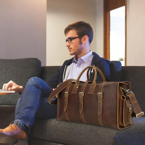• DESIGN: The travel duffle bag has a carry handle and adjustable shoulder strap, shoulder strap is removable and adjustable for your different needs. You can as mens leather bag be a travel shoulder bag/a work crossbody bag/business handbag