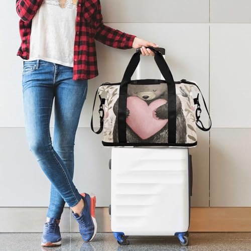 Forest Big Love Bear Gym Bag for Women Sport Travel Duffel Bag Shoulder Weekender Overnight Bags with Wet Pocket & Shoe Compartment 7