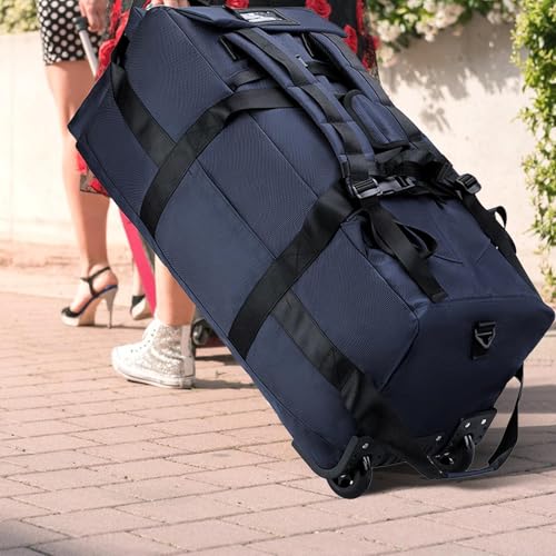 HOT ! Duffel Bag with Wheels Luggage Heavy Duty Foldable Trolley Bag Suitcase for Outdoor Camping Business Trip Traveling Men Women, Blue