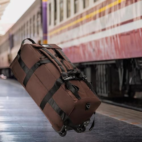 HOT ! Duffel Bag with Wheels Luggage Heavy Duty Foldable Trolley Bag Suitcase for Outdoor Camping Business Trip Traveling Men Women, Brown