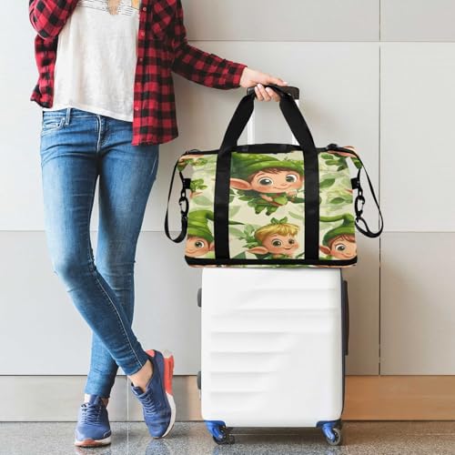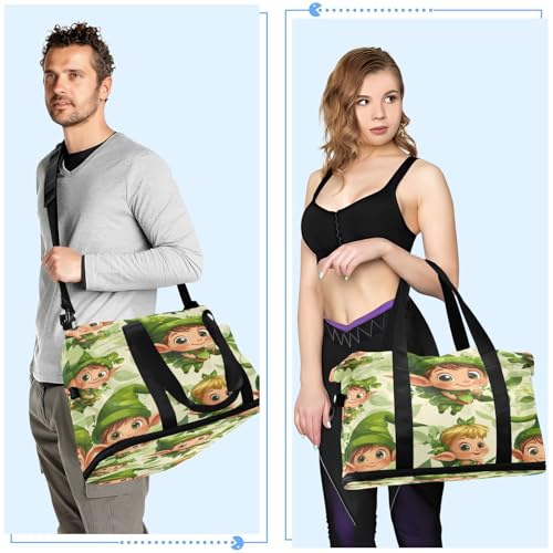 HOT ! Cute Elves St. Patrick's Day Gym Bag for Women Sport Travel Duffel Bag Shoulder Weekender Overnight Bags with Wet Pocket & Shoe Compartment