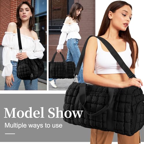 Quilted Travel Duffle Bag Gym Bag&Quilted Backpack Purse for Women,Large Puffer Duffle Weekender Bag Lightweight Puffer Puffy College Laptop Backpack with Compartment for Travel Gym Airplane(Black) 6