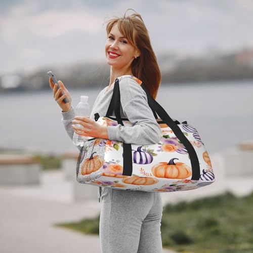 HOT ! Duffle Bag Purple Flower Pumpkins Travel Duffel Bags for Men Women with Adjustable Strap Carry on Gym Bag Overnight Weekender Bag