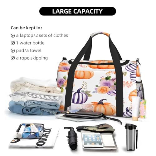 Duffle Bag Purple Flower Pumpkins Travel Duffel Bags for Men Women with Adjustable Strap Carry on Gym Bag Overnight Weekender Bag 7