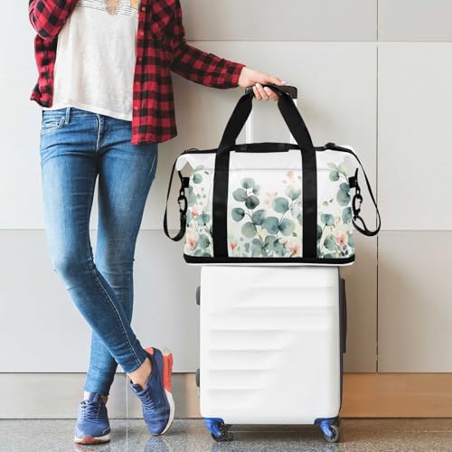 Watercolor Leaf Gym Bag for Women Sport Travel Duffel Bag Shoulder Weekender Overnight Bags with Wet Pocket & Shoe Compartment 6