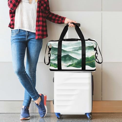 HOT ! Misty Mountain Gym Bag for Women Sport Travel Duffel Bag Shoulder Weekender Overnight Bags with Wet Pocket & Shoe Compartment