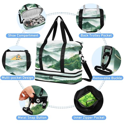 Misty Mountain Gym Bag for Women Sport Travel Duffel Bag Shoulder Weekender Overnight Bags with Wet Pocket & Shoe Compartment 6