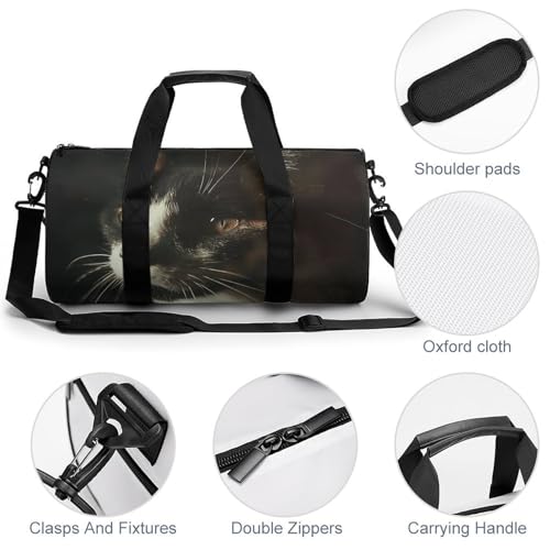 Gym Bag for Men Women Cat with White Eyes Duffel Bag Overnight Bag with Compartment Gym Sackpac 6