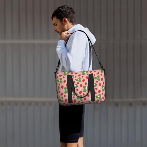 • Travel Bags for Women Men: This Cute Crisp Strawberry Flower sports fitness bag has a stylish appearance and perfect for various activities . It can be used not only as a men's sprot gym bag and travel holdall bag, but also as a women's handbag, Overnight bag, and business travel bag