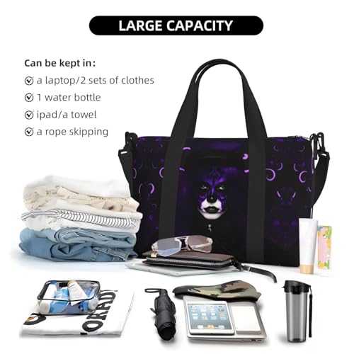 Purple Black Goth Spooky print Travel Duffel Bag,workout duffel bag, overnight shoulder Bag,Weekender Bag for Women Men 5