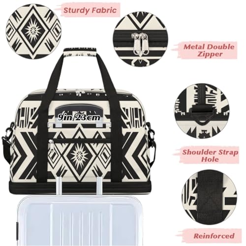 Travel Duffel Bags Aztec Pattern Foldable Weekender Bags for Women with Shoes Compartment Waterproof & Tear Resistant Carry on Overnight Luggage Duffel Bag Shoulder Sports Tote Bag 3