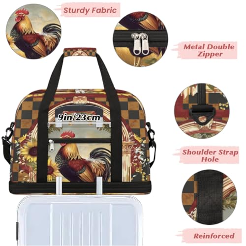 Travel Duffel Bags Sunflower Floral Rooster Foldable Weekender Bags for Women with Shoes Compartment Waterproof & Tear Resistant Carry on Overnight Luggage Duffel Bag Shoulder Sports Tote Bag 3