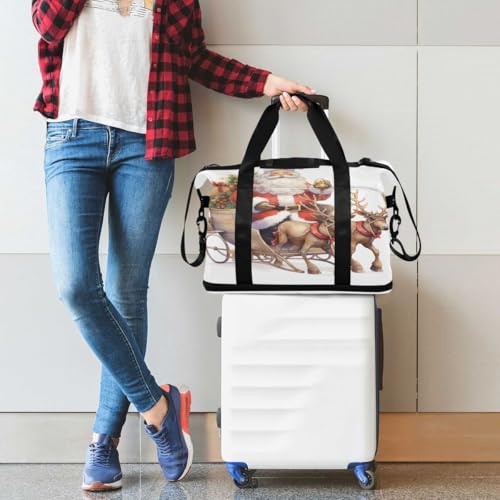 HOT ! ALAZA Reindeer Animal Santa Claus Merry Christmas Duffel Bag with Shoe Compartment Tote Bag Weekender Overnight Bag with Wet Pocket for Travel,Gym,Yoga,Swimming