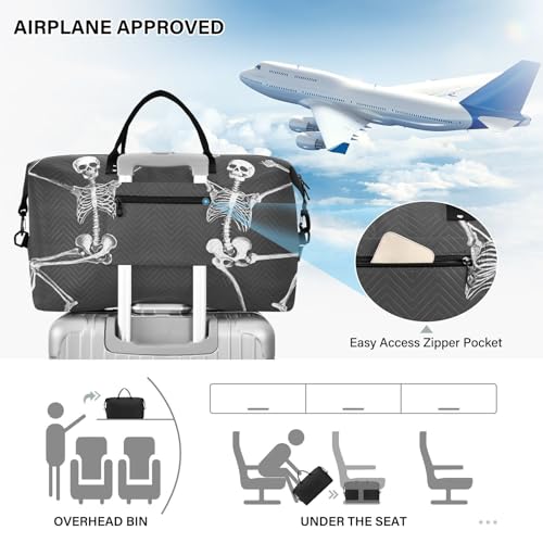 HOT ! Large Travel Duffel Bag, Skeleton Dance Funny Sport Tote Gym Bag, Shoulder Weekender Overnight Bag for Women Men, Carry On Luggage with Toiletry Bag