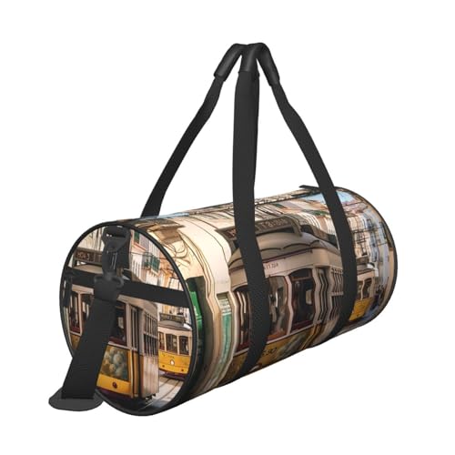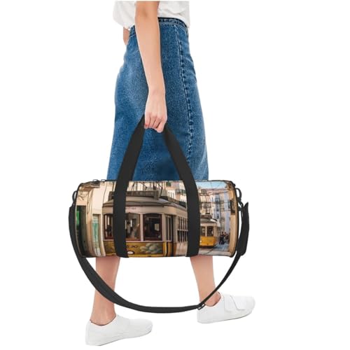 Travel Duffle Bag Weekender Bags for Men Women with Shoe Compartment Large Capacity Weekender Overnight Bag Lisbon Tram Carry On Tote Bags Sport Gym Bag for Travel Yoga, Black, One Size 7
