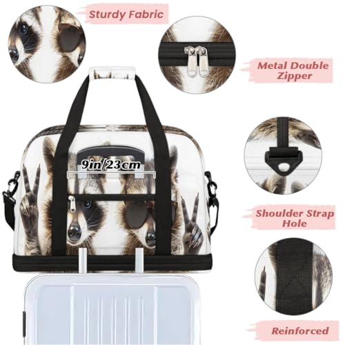 Travel Duffel Bags Cute Animal Raccoon Foldable Weekender Bags for Women with Shoes Compartment Waterproof & Tear Resistant Carry on Overnight Luggage Duffel Bag Shoulder Sports Tote Bag,B-367 5
