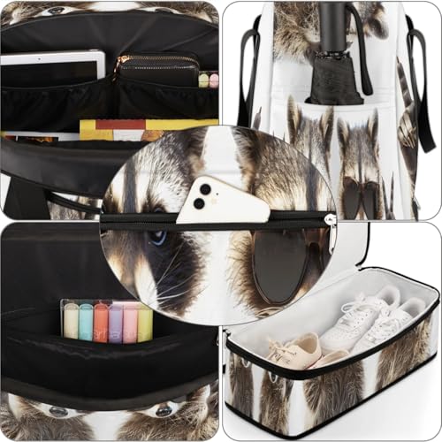 Travel Duffel Bags Cute Animal Raccoon Foldable Weekender Bags for Women with Shoes Compartment Waterproof & Tear Resistant Carry on Overnight Luggage Duffel Bag Shoulder Sports Tote Bag,B-367 6