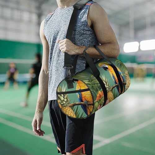 HOT ! Travel Gym Duffle Bag, Summer Parrot Pineapple Bird Print Duffle Bags,womens Mens Gym Bag,gym Bags,gym Bag with Shoe Compartment