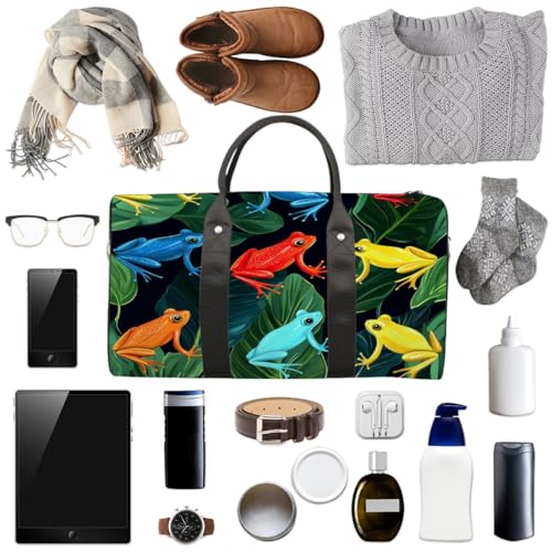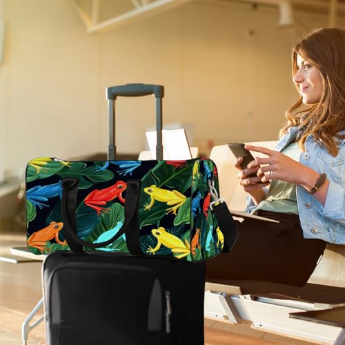 HOT ! Colorful Frogs Travel Duffel Bag, Frog Leaves Sports Tote Gym Bag, Foldable Weekender Overnight Bag, Luggage Handle Bag for Women Men