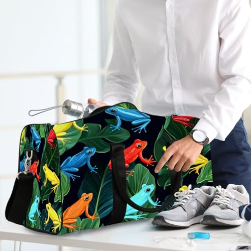 Colorful Frogs Travel Duffel Bag, Frog Leaves Sports Tote Gym Bag, Foldable Weekender Overnight Bag, Luggage Handle Bag for Women Men 7