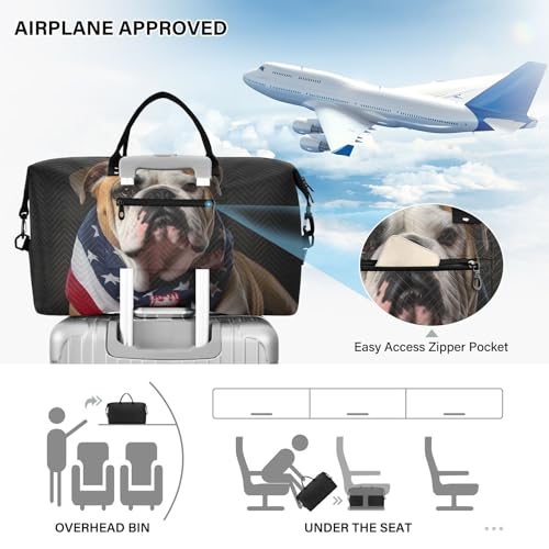 Large Travel Duffel Bag, American Bulldog Sports Tote Gym Bag, Shoulder Weekender Overnight Bag for Women Men, Carry On Luggage with Toiletry Bags 7