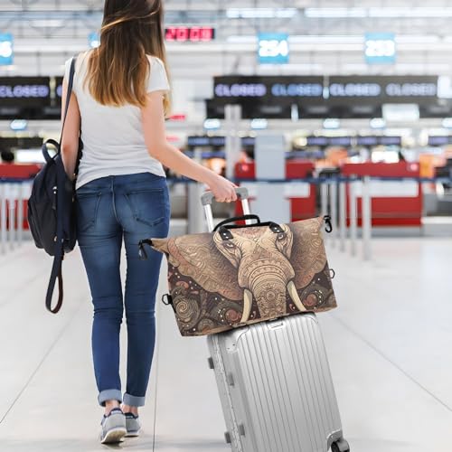 HOT ! Large Travel Duffel Bag, Boho Epephant Head Sports Tote Gym Bag, Shoulder Weekender Overnight Bag for Women Men, Carry On Luggage with Toiletry Bags
