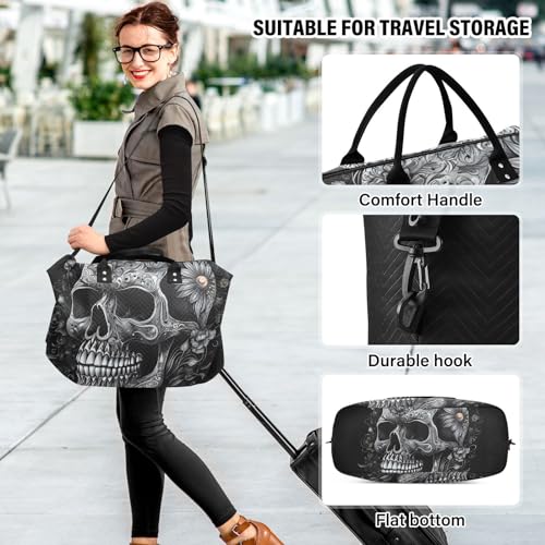 Large Travel Duffel Bag, Peace Skull Sports Tote Gym Bag, Shoulder Weekender Overnight Bag for Women Men, Carry On Luggage with Toiletry Bags 7