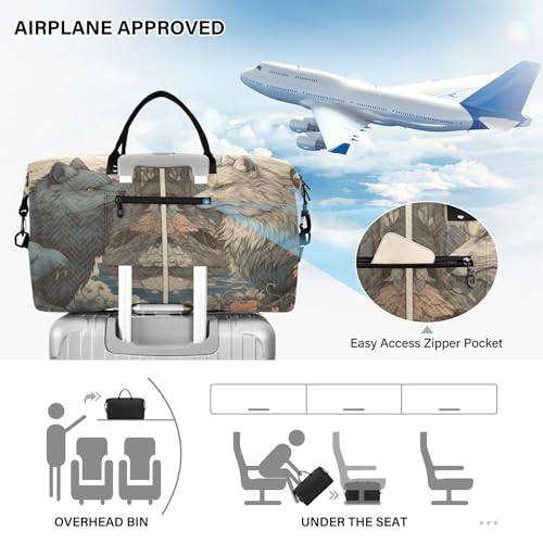 Large Travel Duffel Bag, Two Fox Sports Tote Gym Bag, Shoulder Weekender Overnight Bag for Women Men, Carry On Luggage with Toiletry Bags 5