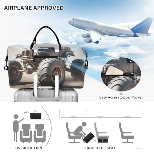 HOT ! Large Travel Duffel Bag, Punk Monster Truck Sports Tote Gym Bag, Shoulder Weekender Overnight Bag for Women Men, Carry On Luggage with Toiletry Bags