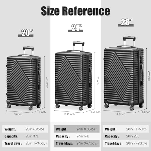 More information about 3 Piece Luggage Set with TSA Lock, Hardside Suitcases with Spinner Wheels, Durable ABS Travel Luggage Set 20/24/28 Inch Lightweight Expandable Hard Shell for Men Women (Black)