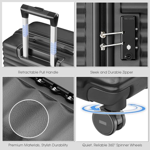 3 Piece Luggage Set with TSA Lock, Hardside Suitcases with Spinner Wheels, Durable ABS Travel Luggage Set 20/24/28 Inch Lightweight Expandable Hard Shell for Men Women (Black) 4