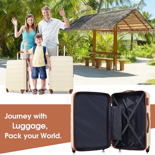 More information about 4 Piece Hardshell Luggage Set with Expandable Spinner Wheels and Lightweight Design, 16-28 Inches, Brown and White