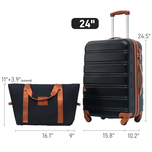 • [Include]Expanable Spinner Wheel 2 Piece Luggage Sets ABS Lightweight Suitcase with TSA Lock 24inches Luggage & 1 Travel Bag