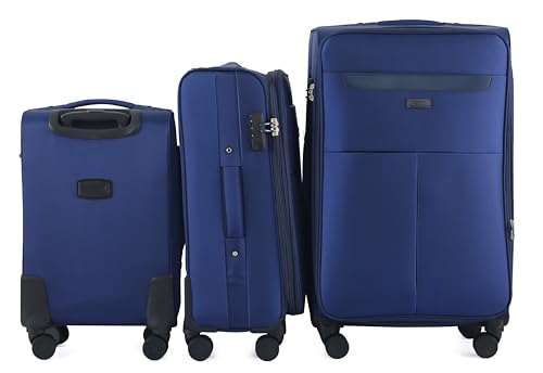 IZOD Liam Soft Shell Lightweight Expandable 360 Dual Spinning Wheels Combo Lock 28", 24", 20" 3 Piece Luggage Set (Navy) 3