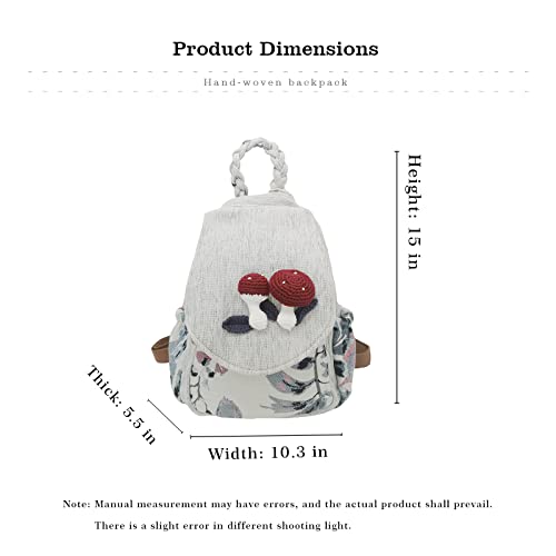 HUANGGUOSHU Women Cotton Woven Bohemian Hemp Boho Canvas Embroidery Multi Pocket Retro Cute Backpack Wallet Backpack(Mushroom) 4
