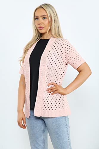 Loxdonz Women's Short Sleeve Knit Crochet Cardigan Sweaters Open Front Coat Summer Cardigan for Women 6
